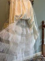 Remarkably preserved, this gown is in excellent condition for its age. As with all vintage garments, minor signs of wear may be present. The dress has been cleaned and is ready to wear. There is a faint spot on the front layer of tulle where the coloring from the stems transferred. There is a small snag on the outer layer of tulle. These are very minor, please refer to photos.