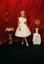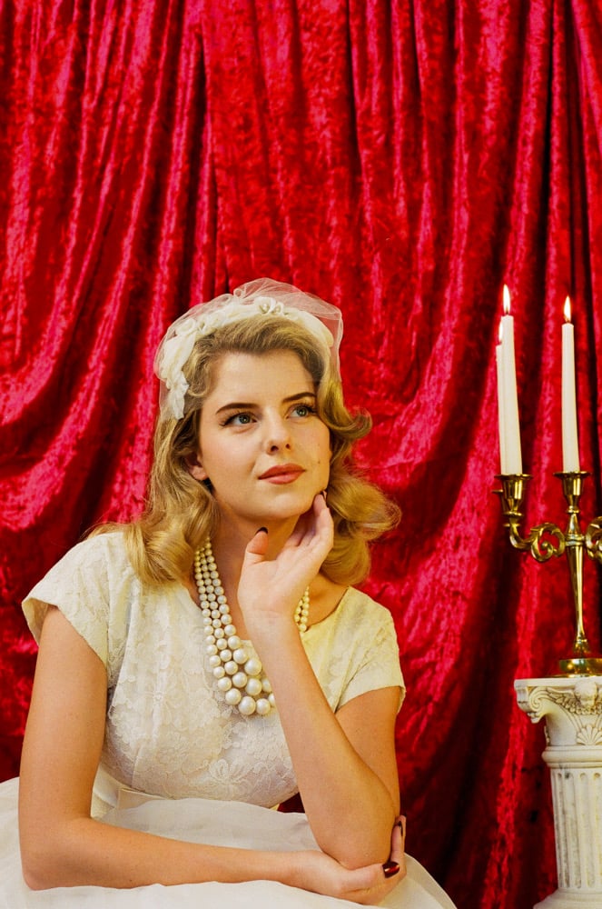 The dress is modeled with a crinoline to achieve the authentic 1950s look. Please note these undergarments are not included with the dress, but I’m more than happy to recommend shops where you can find similar pieces to recreate this silhouette.