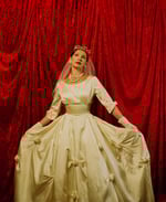 The dress is modeled here with a crinoline to achieve the authentic 1950s look. Please note that these undergarments are not included with the dress, but I’m more than happy to recommend shops where you can find similar pieces to recreate this silhouette.