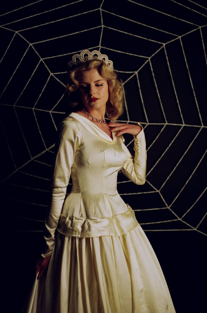 The dress is modeled here with a boned underbodice and crinoline to achieve the authentic 1950s look. Please note that these undergarments are not included with the dress, but I’m more than happy to recommend shops where you can find similar pieces to recreate this silhouette.