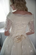 The dress is modeled with a crinoline to achieve the authentic 1950s look. Please note these undergarments are not included with the dress, but I’m more than happy to recommend shops where you can find similar pieces to recreate this silhouette.
