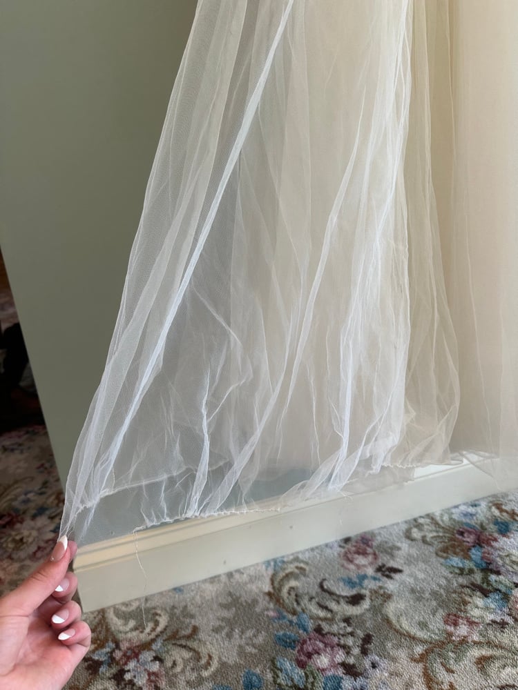 This dress is in good condition. We have repaired a tear in the skirt and there is a pull in the hem, refer to photos. Please note all items are vintage and might have minor signs of wear due to its age.