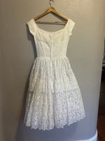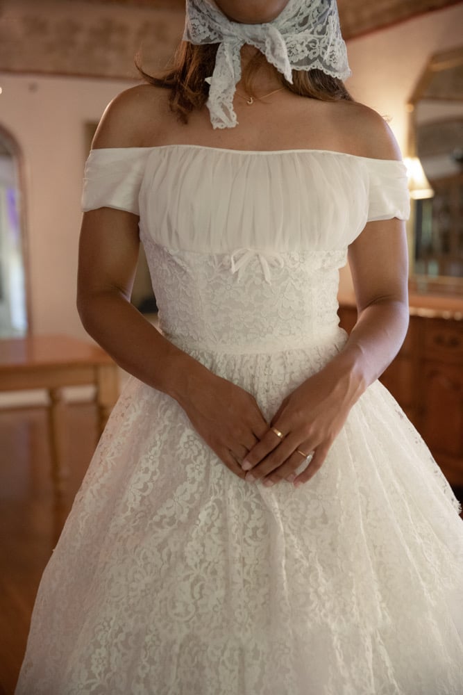 The dress is modeled with a crinoline to achieve the authentic 1950s look. Please note these undergarments are not included with the dress, but I’m more than happy to recommend shops where you can find similar pieces to recreate this silhouette.