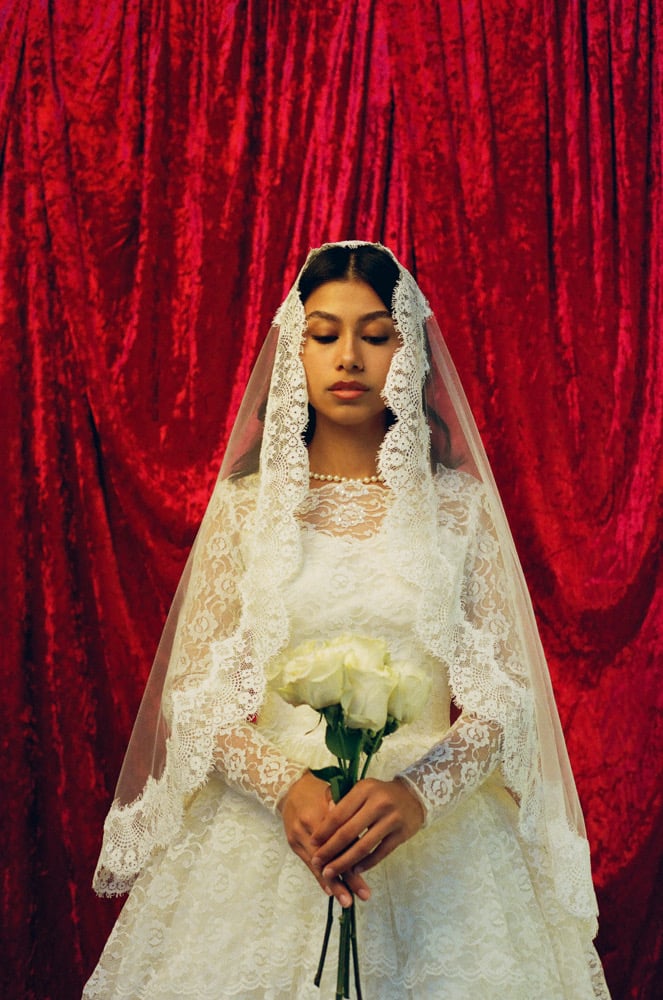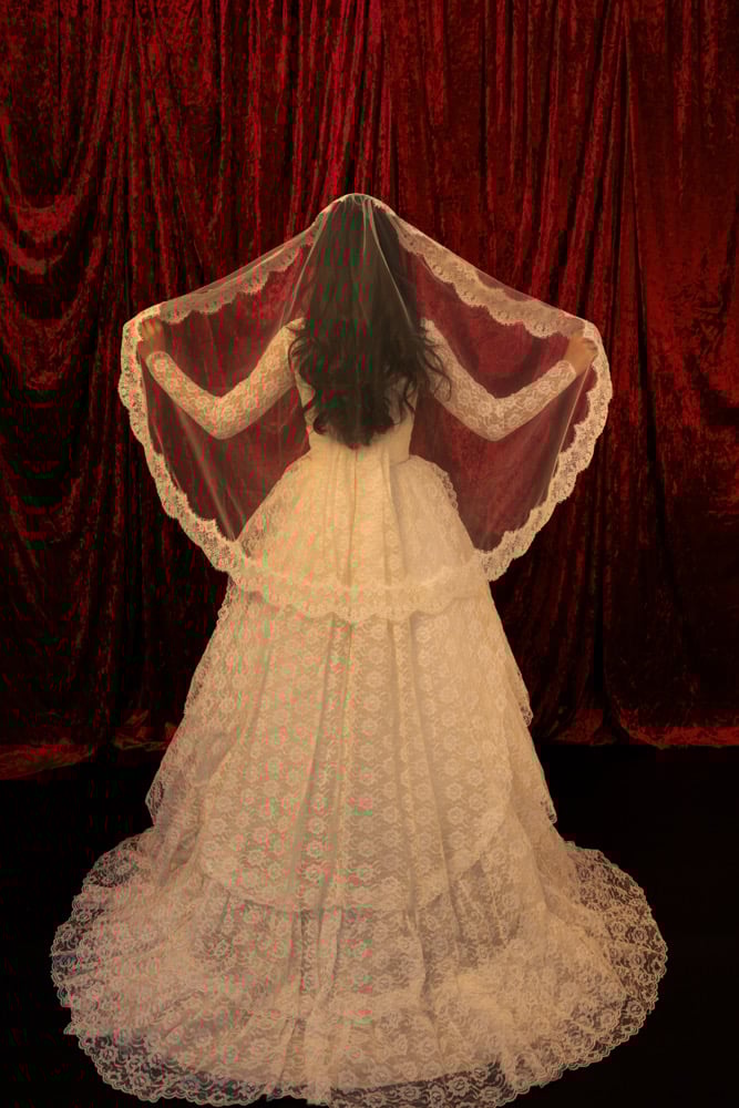 This piece is inspired by the classic mantilla lace veil that completes a vintage bridal look perfectly. This is a modern veil that has been carefully made to match vintage wedding gowns. There is a comb attached that secures the piece in the hair.